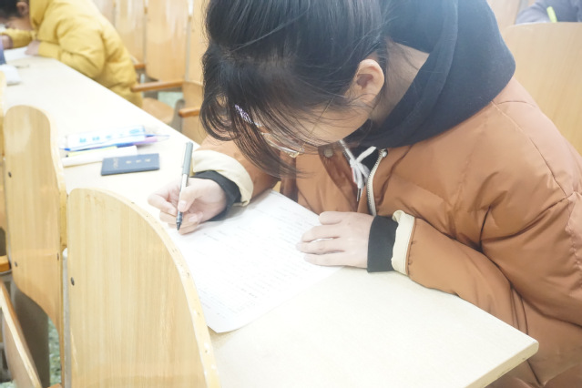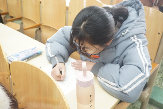 考试开始前,考生们陆续的来到考场并按照考号坐好,等待着监考老师发卷。部分考生还拿出复习讲义来进行翻看,进行考前冲刺。在监考老师讲完考试注意事项后,班级内佩戴“入党积极分子”徽章的考生率先将复习资料和关机后的手机置于书包中,将书包拿到讲台之上,其他考生们也纷纷将手机主动关机放于讲台之上。整场考试下来,入党积极分子们认真读题,严肃考纪,在考试结束铃声响起后方才交卷离开考场。