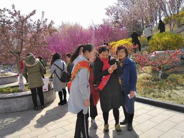 活动伊始,服务部部长张洪凯分发志愿团绶带并将志愿者分为两组分别负责连心湖,稷下湖的活动。活动过程中,志愿者们向游客介绍谈球吧最佳赏花地点并提醒游客拍照过程中注意安全,有些游客也在志愿者的带领下去三教图书馆等地赏花。赏花期间志愿团成员会为游客讲解有关花草的知识,并制止游客大声喧哗,随意采摘等不当行为,使游客学会正确赏花。游客得知此次活动为志愿团志愿活动,也都积极配合。并有游客请志愿者帮忙拍照并与志愿者合照留念。也有一部分志愿者负责及时疏通人流,减少拥堵,避免踩踏等事件发生,获得游客的赞美与鼓励。