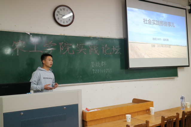 而“农情天山”团队喻邦勇除了给同学们讲解社会实践的相关事宜之外还分享自己团队的社会经历。讲到社会实践的相关事宜时,他非常细致地从前期准备、参加人员和新闻宣传等五个方面为同学们进行讲解,其中着重讲解在新闻宣传方面的注意事项以及新闻宣传对于一个实践团队的重要性。每一位同学都认真倾听他的讲解并且认真地记录。他通过几个感人肺腑的故事来表达自己社会实践时感受,情真意切的讲述触动同学们的心灵,在场的同学都有很大的感触。伴随着一张张感人的照片在屏幕上浮现,论坛逐渐进入尾声。