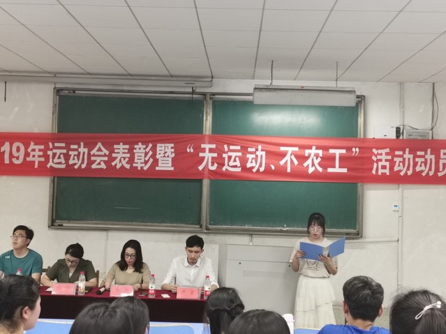 魏洪磊宣读《谈球吧官方网站“无运动、不农工”倡议书》,分别从教师、班级、团体组织和个人这四方面进行倡议,倡议全院师生积极运动,彰显农工师生充满朝气的运动风采。