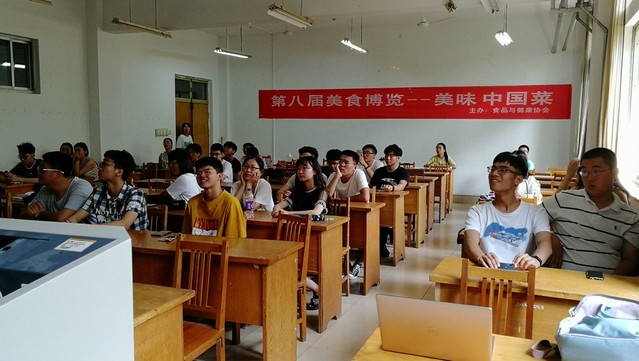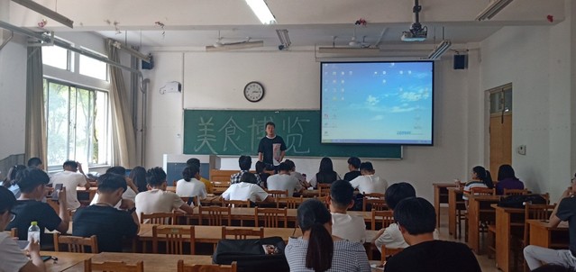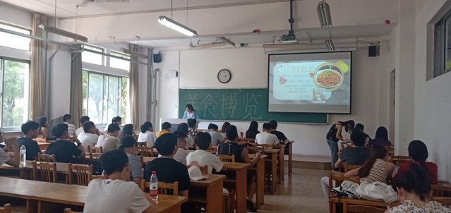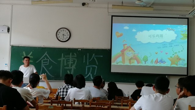 本次初赛采用的是选手主讲、PPT放映辅助的方式。比赛开始前,主持人张宗元对本次活动做了简要介绍,随后,此次美食博览活动正式拉开帷幕,每一位参赛选手都精神饱满,准备充分,制作了精美的PPT,每队的主讲人结合自己准备的PPT课件上的图片以及文字对自己的菜肴进行了细致的讲说,在使台下观众被美食吸引的同时,了解到其中的营养价值,也让大家简单的掌握了制作菜肴的方法以及烹饪过程中需要留心的注意事项。