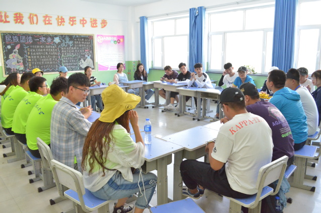 经过简单休整,两个团队与栾青胜在会议室进行交流。栾青胜讲到,西部计划是由中央财政支持,招募普通高等公司应届毕业生,到西部12省及部分地区贫困县进行援助工作的项目,并向两个团队简单介绍木垒县发展现状,他介绍附近乡镇状况,为两个团队社会实践活动顺利提供方向。