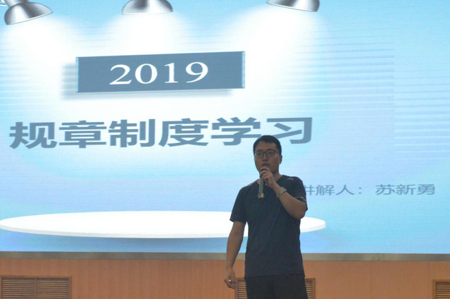 在学籍管理办法方面,苏新勇通过学籍注册、学业预警、成绩考核等内容,带领全体新生较为全面的了解公司学籍管理办法,每位员工必须遵守课堂纪律和成绩考核规定,对于请假销假严格按照公司流程,并对“选修课必逃,必修课选逃”的现象进行警示。