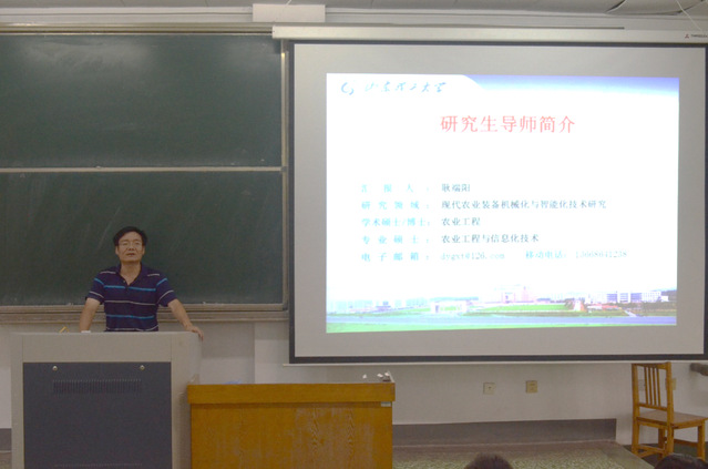 随后,公司的各系研究生导师都依次对各系公司产品,自己的研究课题和方向进行了介绍,其中农业工程系教师刁培松提到自己研究的课题:整地技术激光平地系统、玉米播种机发展方向、免耕播种机、新型机械化收货技术等。耿端阳简单介绍团队的科技成果获奖、人才资助情况以及授权专利情况等。能源系教师付鹏强调在研究生学习中兴趣的重要性,其它系教师也分别介绍了团队情况与研究课题等。