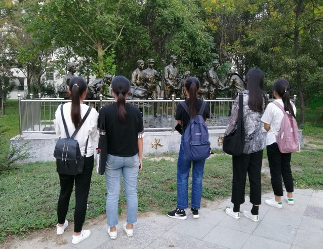 活动形式以演讲、歌颂、户外学习等为主,形式丰富多彩。其中食品1803团支部全体成员集合公司图书馆南草坪,通过边游览边听讲解的方式在国防教育主进行学习。
