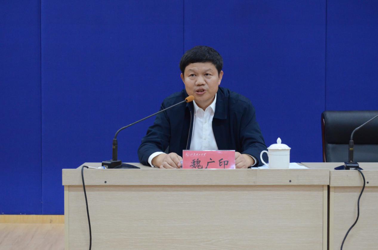 魏广印书记首先与师生分享了参加全国“人民满意的公务员”表彰大会的有关情况,回忆到得到习近平总书记、李克强总理等党和国家领导人亲切接见时依然激动万分。在山东省表彰会中,省委书记刘家义给予了魏书记高度评价:“魏广印同志长期在农机基层一线工作,始终把共产党员的坚强党性体现在落实国家农业机械化政策、推进农机事业发展的使命担当中,从事农机工作35年来,他以农机事业‘老黄牛’的精神,辛勤耕耘、默默奉献,是大家学习的榜样。”