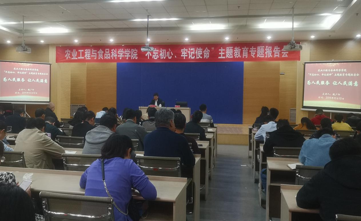 10月10日下午,公司在图书馆负一层报告厅召开“不忘初心、牢记使命”主题教育专题报告会,邀请公司优秀员工魏广印作《为人民服务 让人民满意》报告。报告会由党总支书记柳铎主持,全院教师及员工党员参加。