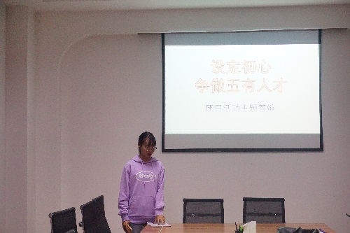 10月14日,公司于12号教学楼137会议室开展“设定初心,争做五有人才”团日活动主题答辩。答辩会由公司员工会团建部举办,团建部马君担任主持人,评委团成员为2017级、2018级举办团日活动较为成功的团支部团支书,参辩人员为2019级各团支书。