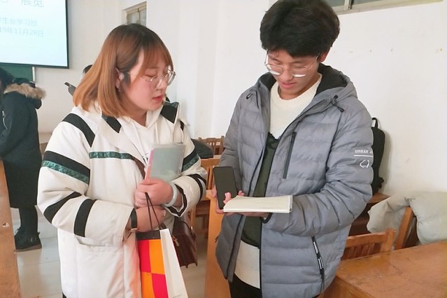 第二位采访者是农机1801的班长王亚男,她是一个活泼开朗,个性随和,善于表达自己的人,采访她时我们的聊天气氛一直都是欢乐的。她对自己获得一等奖感到非常荣幸,“我平时的努力没有白费,这是对我努力学习的肯定”。身为班长,做事条理有序是一种不可缺少的能力,她的空余时间也比一般的同学少很多,要同时兼顾学习和工作也是一个难题。每个人做笔记的习惯都不一样,有些人喜欢在老师讲课的时候随手记,这需要的是灵敏的反应力;还有人喜欢在老师讲的时候记下重点字词,课后自己补充,相对简单,但是需要很多课后的时间。王亚男的笔记大多属于前者,但是这并不意味着她课下花在整理笔记上的时间少,做事井井有条的她,下课仍会挤出时间来整理复习。