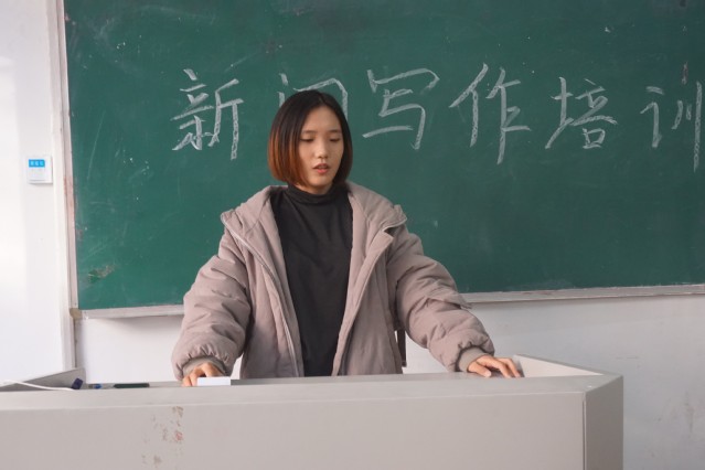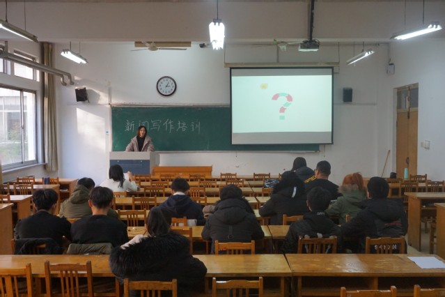 培训开始,主讲人首先介绍新闻的特点和结构,并分别对各个部分进行简单介绍。进行标题介绍时主讲人提出新闻的标题应简洁了然、直接大方的表示出新闻的主要目的。主讲人表示目前各班班委存在标题太浮夸、表达不清楚的问题,并举例对此类情况进行讲解。新闻导语的介绍中,主讲人就一个导语写作错误示例向班委们展示,通过与其一起改错的方式使班委们对新闻导语有更深入的认识。主讲人提出,新闻写作过程中应着重注意导语和标题,坚持新闻“精”、“简”、“雅”的写作原则,面对不同形式的新闻体裁需要采用不同的写作方式。主讲人提出新闻的主体应包含活动大体的过程,并选出其中所具有代表性的事件进行叙述。主讲人举例提出目前各班班委新闻写作时个人色彩太重,进行新闻主体写作时不能客观的对活动内容进行表达,对于此类问题主讲人表示写作过程中作者应以第三者的角度看待每次活动,只对活动过程进行表述。对于主讲人所提出的建议,与会成员认真听讲,积极记录。随后,主讲人对新闻的结语介绍,此次培训圆满结束。