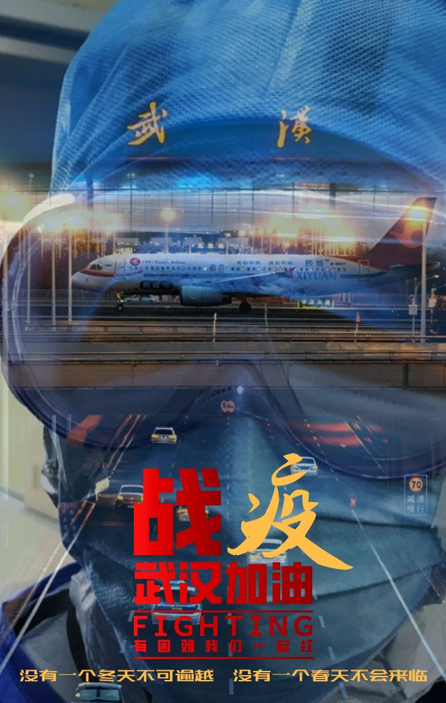 海报下方是战疫武汉加油等字,不难看出这几个汉字如一个整体而其中的疫字的一捺如同一把利刃刺出了这个整体,体现了它的突如其来和危险程度。而文字的字体是越来越小,给人们一种由远及近的感觉,体现出了疫情发生后全国人民对武汉的支持与支援。我们相信爱和希望比病毒蔓延的更快。立春刚过,没有一个冬天不可逾越,没有一个春天不会来临。