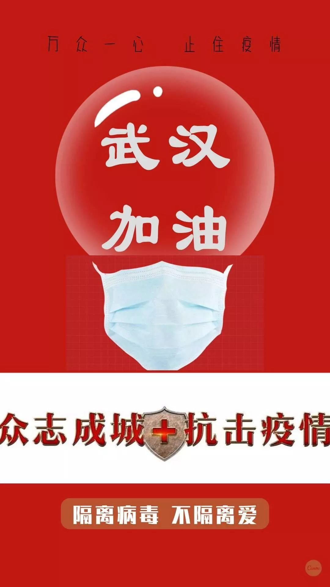 全国人民要联起手来,众志成城,抗击疫情,相信疫情终将被打败!中国加油!武汉加油!