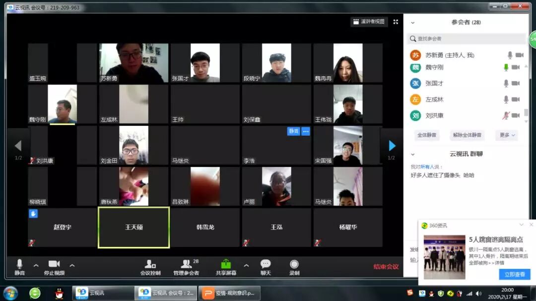 本次“云”班会充分发挥线上实时互动的优势,跨越空间障碍,是谈球吧官方网站加强抗“疫”时期员工思想政治教育的有益探索,不仅拉近了居家员工与公司的距离,也让员工对新型冠状病毒感染的肺炎有了更深刻的认识,更加坚定了同学们抗击疫情的信心。