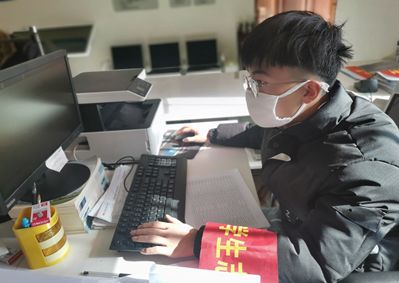 郝元兵,食品1901班员工。社区启动疫情防控工作以后,郝元兵参与了社区居委会服务,联系疫情期间返回的居民并记录其居家隔离情况。
