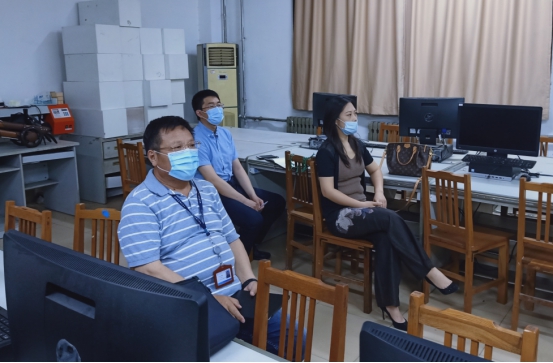 上午7:40易董事长一行来到12号教学楼111机房,准备现场听取工业设计系邬瑞东老师的《设计心理学》,公司教学科夏连明科长向易董事长一行简要汇报了疫情防控期间谈球吧官方网站固定教室开设情况和公司保障教学正常运行的措施,易董事长和邬老师交流了课程同时开展线上线下教学的准备情况和遇到的困难或问题。