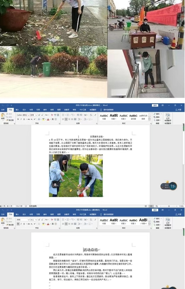 志愿服务活动采用线下方式进行,学员们积极参加各类实践活动,主动参与所在社区、村庄的疫情防控、卫生清扫等工作,充分发挥入党积极分子的先锋作用,为打赢疫情防控阻击战贡献自己的力量。