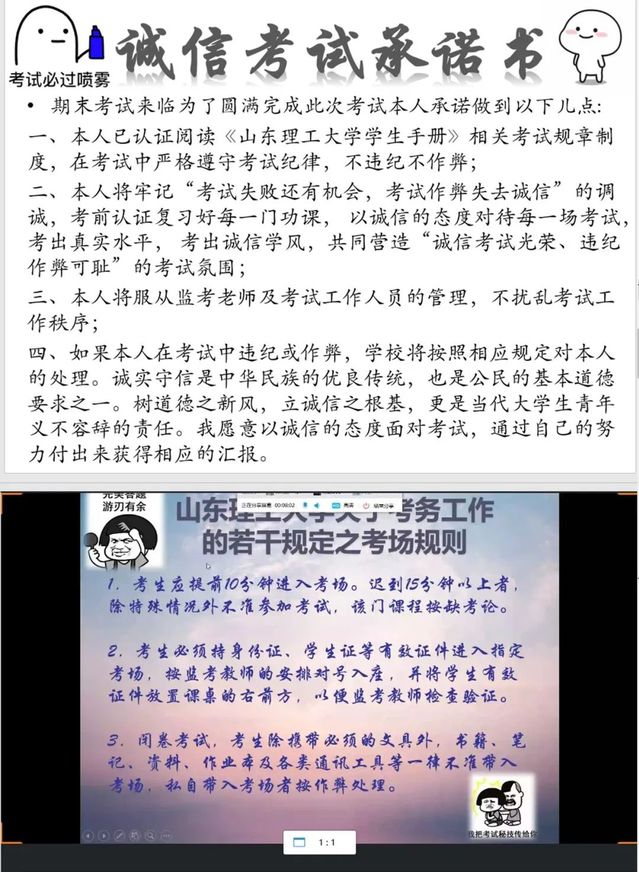 在期末考试来临之际,工设1802班团支部为端正青年团员的诚信观念,强调考试纪律,使线上考试可以顺利进行,于6月11日下午14:00准时举办“用实力验证自我,以诚信构筑人生”主题团日活动。活动由团支书带领大家进行《谈球吧关于考务工作的若干规定之考场规则》的学习,使大家首先清晰什么可以做什么不能做的概念。最后,全体同学签写诚信考试承诺书,坚定遵守考试纪律的信念。