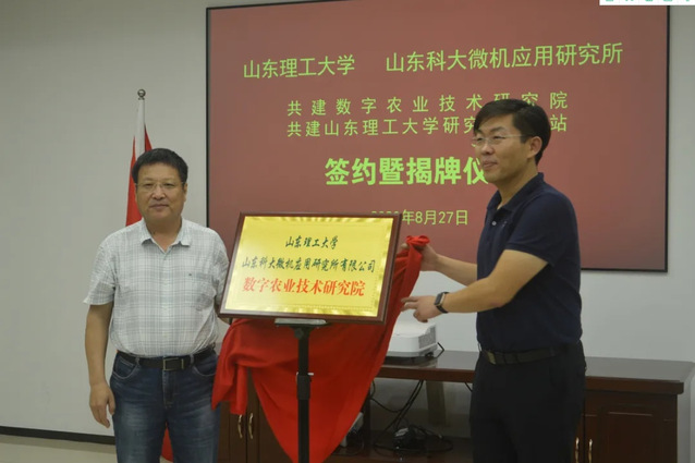 8月27日上午,公司与山东科大微机应用研究所举行“数字农业技术研究院”签约仪式,为研究生工作站揭牌。