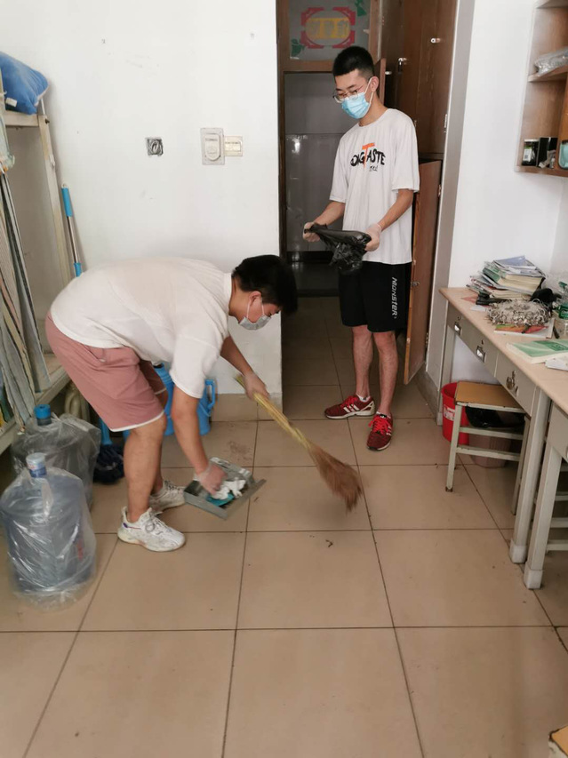 七月的风,八月的雨,我在九月等着你。8月30日上午,为迎接即将疫情返校“回家”的学子,公司全体辅导员带领公司留校员工党员干部来到员工公寓开展志愿服务活动,深入8#、13#、15#员工公寓楼,共计220余间员工公寓打扫宿舍卫生、通风换气、晾晒被褥、清洁消毒、排查安全隐患,为返校员工提供一个温馨、干净的宿舍。