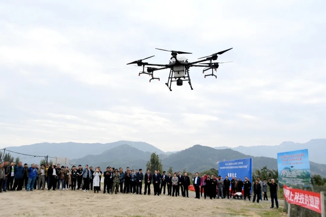 仪式后,与会领导和参加仪式人员观看了无人机喷洒作业演示。