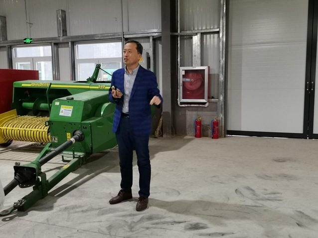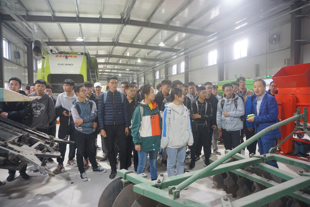 根据疫情防控要求,此次活动分三组错时进行。进入实验大棚前,由各班带班学长组织队伍并强调注意事项。进入第一个实验大棚后,牛国栋开始对同学们讲解像玉米播种机、小麦收割机等一系列大型机器的由来、工作原理及其中所包含的先进技术。牛国栋指出,目前此实验大棚里的一些机器如大型的小麦收割机代表着目前此领域的最高水平,希望同学们能主动学习、了解专业知识和发展方向,积极参与公司老师科研项目,为专业的发展贡献自己的力量。