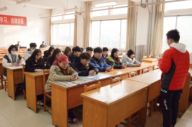在参观廉政馆结束后,全体团干部来到12号教学楼102教室,由员工会艺术团付圣钦带领学唱团歌《光荣啊,中国共青团》,每位团干部昂扬歌唱。之后,主持人郝修照将团干部随机分成4组进行无领导小组讨论。每组团干部针对选题进行充分发言,表达自己的意见和看法。