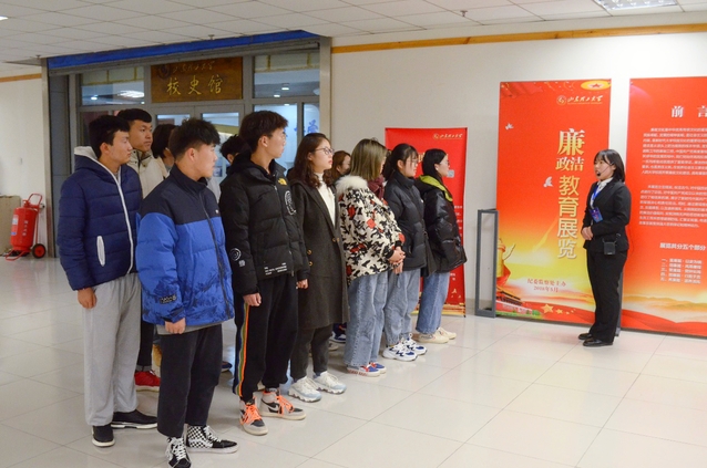 培训伊始,郝修照组织全体团干部到图书馆清廉馆进行参观。讲解员王洁、龙月对清廉馆进行详细介绍,她们从“鉴廉篇·以史为镜”、“倡廉篇·风雨兼程”、“警廉篇·警钟长鸣”、“践廉篇·行胜于言”、“养廉篇·涵养清风”五个部分进行讲解,通过从古至今的案例,诠释“廉则兴,贪则衰”的道理,并展现出中国历代党中央集体紧抓廉政,杜绝腐败的行动,其中涵盖社会各个阶层,各类人员。讲解最后,讲解员龙月呼吁同学们要不忘初心,矢志不渝,营造风清气正的校园环境。