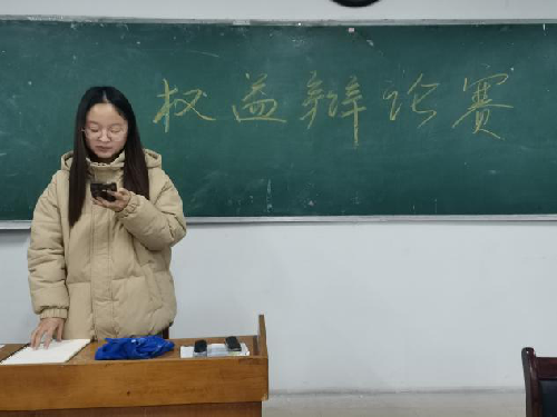 主持人田鑫简单介绍双方选手后,辩论赛正式开始。此次权益辩论赛辩题为应不应该牺牲个人权益维护集体权益。正方一辩开篇立论,面对集体权益时要牺牲个人权益从而促进集体发展。当个人权益与集体权益发生冲突时,集体权益的维护往往更利于集体与个人的发展。反方陈词,要维护集体权益,就要从保护每一个的利益着手。如果集体可以任意侵害某一个成员的利益,那么其他成员的利益也没有保障,最终集体利益也就无从谈起。