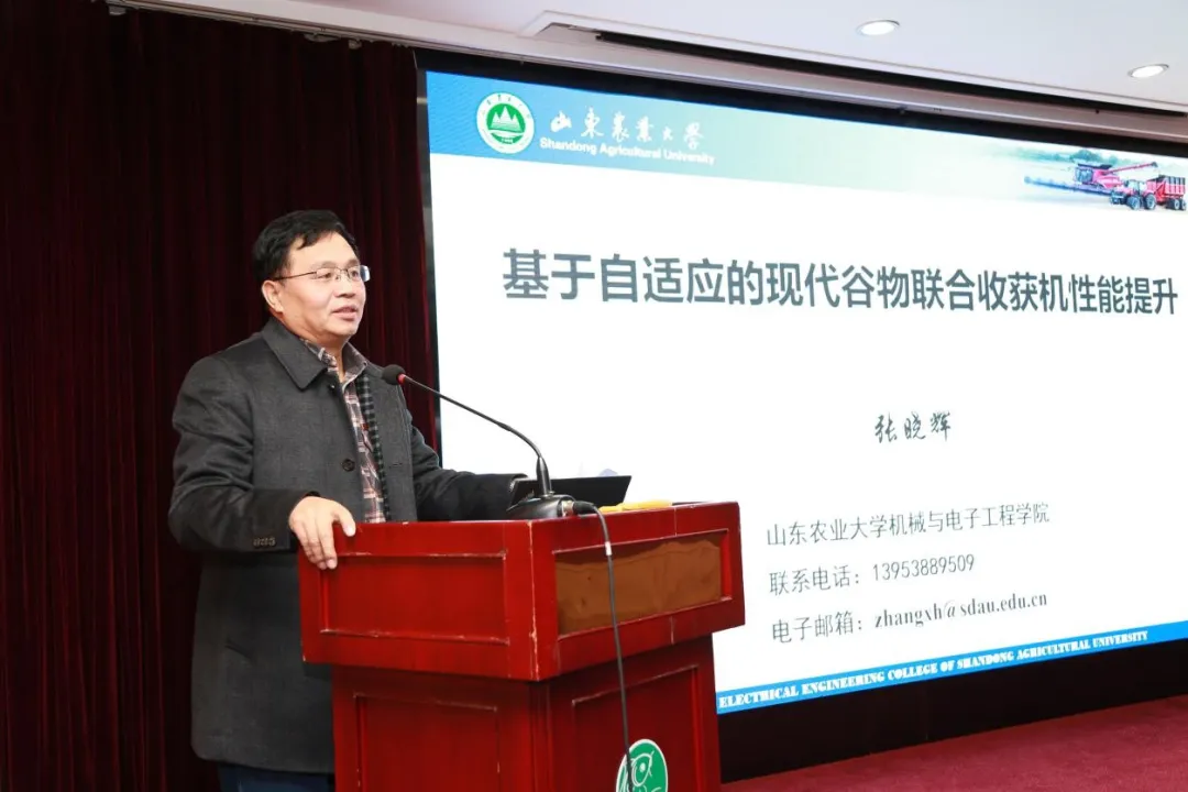 12月20日上午,第324期山东科学大讲堂暨院士专家谈球吧校园行报告会在谈球吧顺利开讲,主题是“智能农机装备助力乡村振兴 引领现代农业新篇章”。本次活动由山东省科学技术协会、山东省教育厅、山东省科学技术厅、山东省卫生健康委员会主办,山东农业机械学会和谈球吧联合承办,报告会由谈球吧农业工程与食品科学公司党总支书记杨直和山东农业大学教授张晓辉共同主持,国内行业专家学者和公司师生代表共计100余人参会。