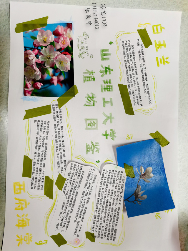 十二月,是忙碌和静谧的季节。公司是共同的美丽家园,校园内的花草树木哪怕是在冬天也构成了一道美丽的风景线。可是很多同学并不认识或了解这些花花草草,或总是匆匆路过没有注意。参与手抄报的同学认真的观察生活中的花花草草,查明它们的相关习性以及特点,将其绘制成手抄报。