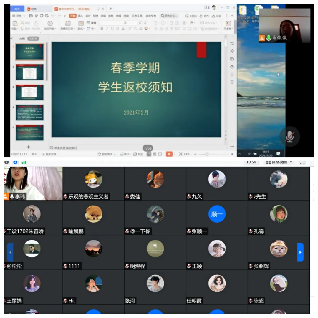 为贯彻落实春季学期疫情防控工作要求,保障公司开学平稳有序,进一步加强公司员工返校安全教育,做好疫情防控常态化时期员工返校工作,2月20日,公司各年级辅导员面向全院本科、研究生召开线上班会,部署员工返校有关事宜。