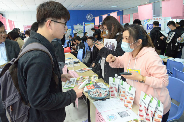 招聘会现场,企业通过张贴海报、发放宣传单页等多种方式向参加求职的毕业生介绍企业概况、招聘岗位计划、薪酬待遇等。毕业生们积极与用人单位洽谈交流,向用人单位询问企业基本情况、发展空间,向心仪企业投递简历。
