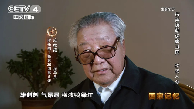 时任炮1师第26团第5连指导员麻扶摇表示:“在入朝前半个月,开誓师大会,我很受教育。一天晚上,拿笔就写,雄赳赳、气昂昂,横渡鸭绿江。保和平,卫祖国,就是保家乡。中华好儿女,齐心团结紧,抗美援朝鲜,打败美帝野心狼。”