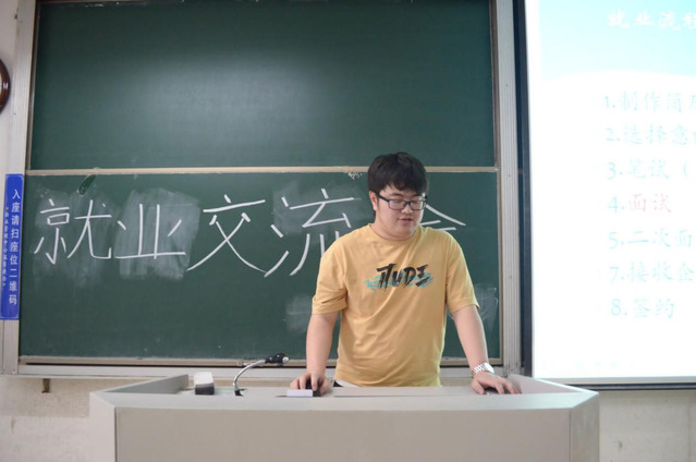 交流会开始,吕翰林针对公司招考要求、性格测试、面试等结合自己的经验进行了介绍。他强调,在面试中经历“群面”的话要在与考官的互动过程中扬长避短,在发挥个人特点的同时注重团队精神。王曼着重介绍了面试中需要注意的细节问题,在她看来,面试不能生搬硬套一些所谓的技巧,而应与实际相结合,要学会灵活应变各种突发情况,才能赢得用人单位的青睐。两人都讲解了笔试环节的准备工作,比如需要的学习材料、答好基础题的要点等等。并指出,在求职过程中要积极参加秋季招聘,提前准备证件照、正装,对工作岗位的选择掌握更大的主动权和选择权,实现早就业。