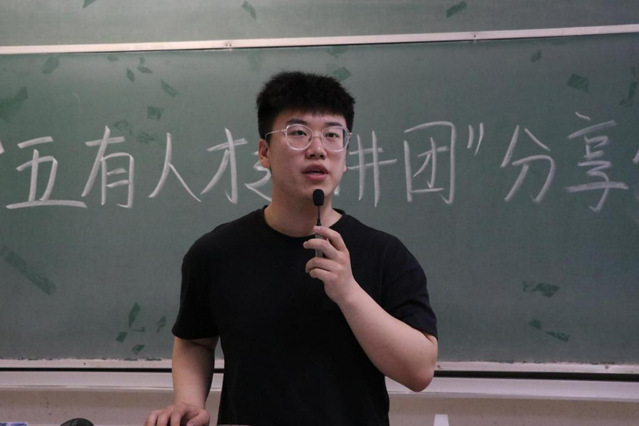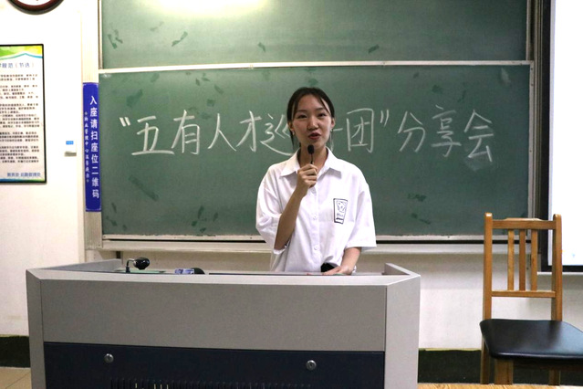 张晓航结合自己的经历,讲述个人在“五有人才”方面的见解。她提出:有社会责任要做到的是去承担责任,积极担任员工会班委职责;敢于参加创新大赛来提高自己的创新精神;有专业知识不仅要做到学习成绩优异,更要做到德才双修;参加社会实践和课外活动来培养实践能力和健康身心。她着重介绍了创新精神的培养,要敢于走进实验室,积极跟老师、学长学姐做实验项目,积极参加比赛。