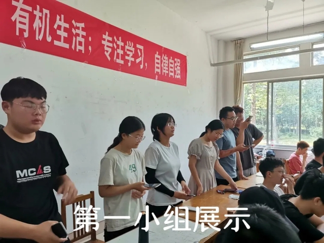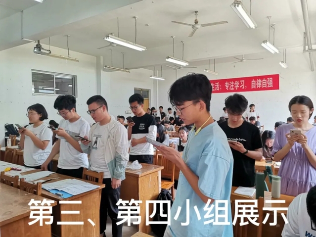 领唱结束后,活动进入第二个环节,小组内自行进行自由练习,一段时间后,主持人刘保月通过签到名单进行抽查,检验小组练习成果,一共抽了四个小组进行展示。