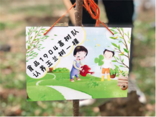 为了呼吁同学们保护环境,食品1904团支部组织全体同学参与植树活动。活动开始前,食品1904全体同学集思广益设计了六张树植认领牌,增加了活动的仪式感。