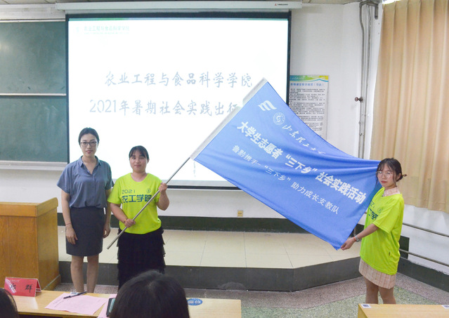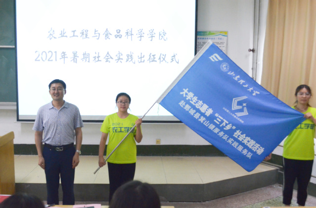 活动最后,刘中合、戴洁和张震红分别为公司“微光”实践团、鲁黔携手--“三下乡”易地搬迁助农支教队、“稷下逐梦、红色传承”实践团授旗。