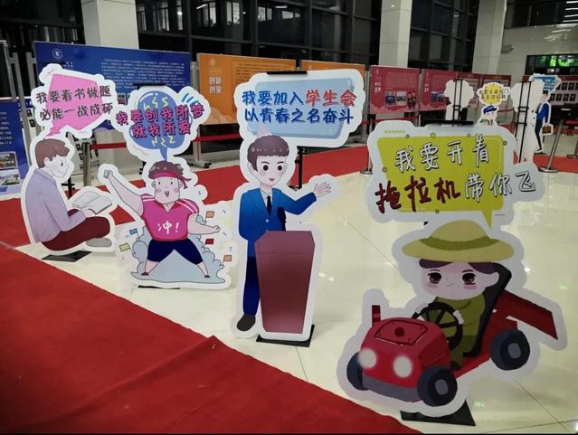 立足生涯教育,融入专业特色,工设系师生设计了涵盖本、硕、博多层次的分年级模块化宣传教育展板及报到通道两侧诙谐幽默的卡通人物,农机系教师、研究生现场布展、讲解基于GIS的农田检测车、植保无人机等智能农业装备与员工科技成果。“走心”的专业元素帮助新同学快速了解公司情况,建立学科自信。