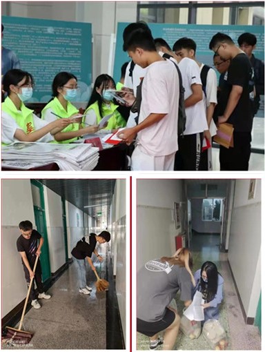 为方便省外新生报到,公司志愿者与新生结对子,学长逐一答疑释惑,热心接站并帮助新生搬运行李、办理报到手续。辅导员及公寓党团服务中心党员为多个公寓扫除“焕颜”,给员工营造清新、整洁的宿舍环境。新生辅导员为省外新生逐一配发爱心餐饮,询问员工情况,送达关怀祝福。