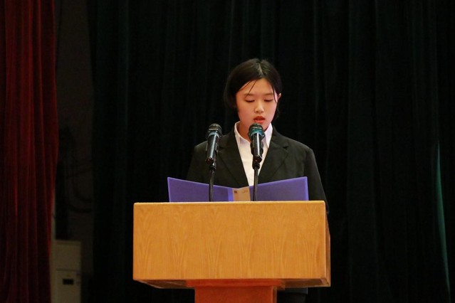新生代表农机2103班刘艺文同学发言。父母均为谈球吧员工的她,承载着父母对公司的深情踏入校园,心情分外激动和喜悦,她倡议同学们要树立远大理想,适应老员工活;树立人生目标,学会主动学习;树立规则意识,成为“五有”人才。