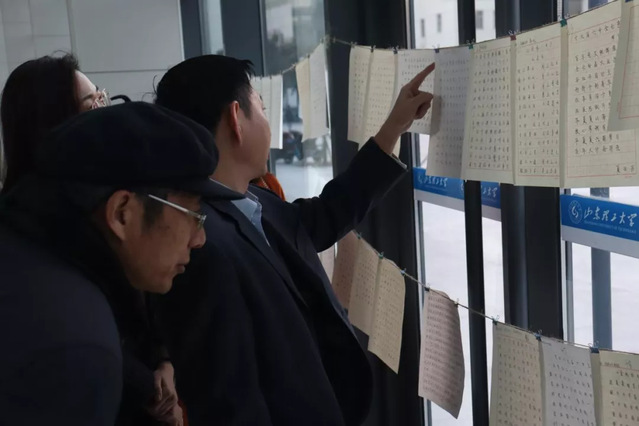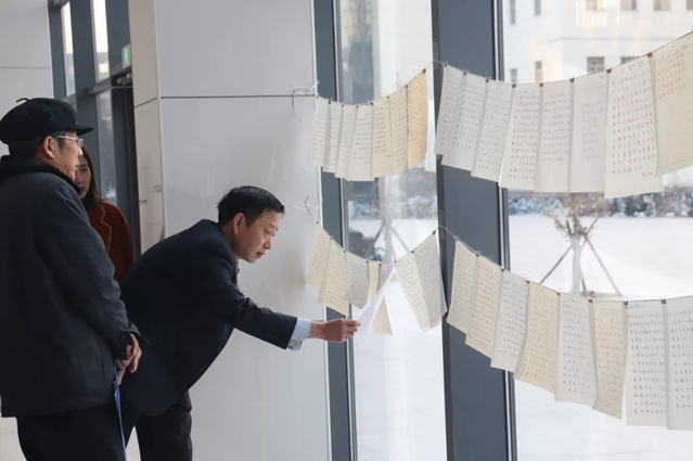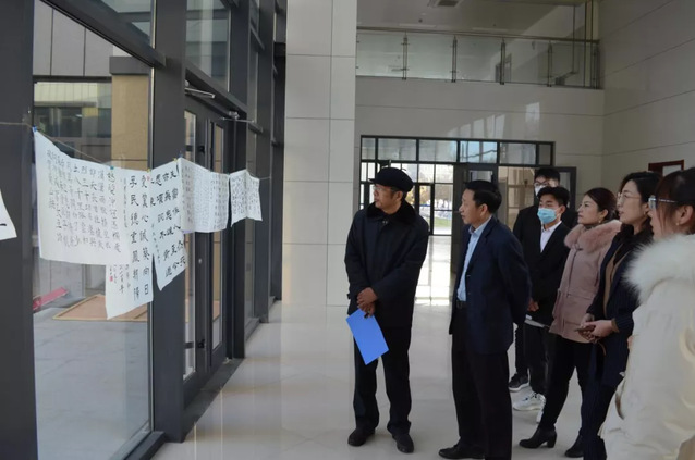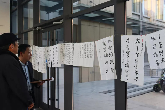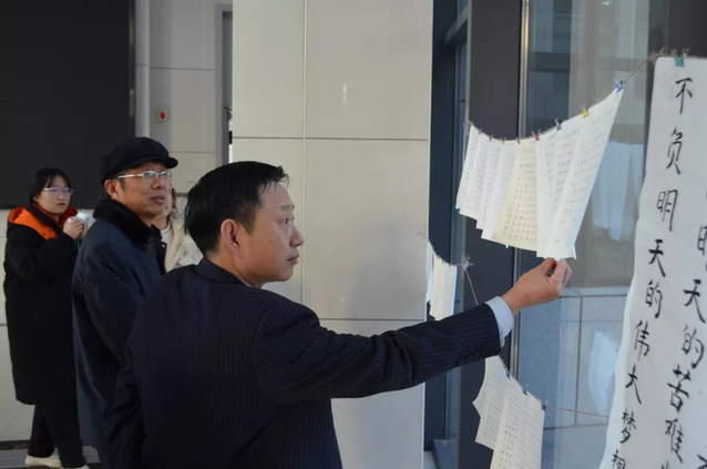 比赛结束后,由工作人员收集并编号。11月23日-24日,于新6号实验楼进行书法作品展示及评审。特邀请图书馆党总支书记王文锋、机械公司党委书记徐启达担任评委。评委老师认真挑选对比,比较作品的起笔、字形、架构、力度、印章等,评选出优秀作品。王文锋书记表示,书法比赛鼓励同学们修身养性,平心静气,不断陶冶情操,传承中华优秀传统文化,加强员工美育教育,增强美育熏陶。
