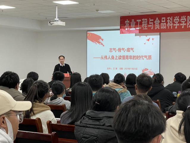 为进一步提高公司员工干部思想政治素养,更好地发挥员工干部的模范先锋作用,11月25日下午,公司在6号实验楼1104会议室举行“农工先锋”员工骨干培训第一讲,邀请校团委书记王振作《志气·骨气·底气——从伟人身上读懂青年的时代气质》思想建设报告,21级全体员工干部参加培训。