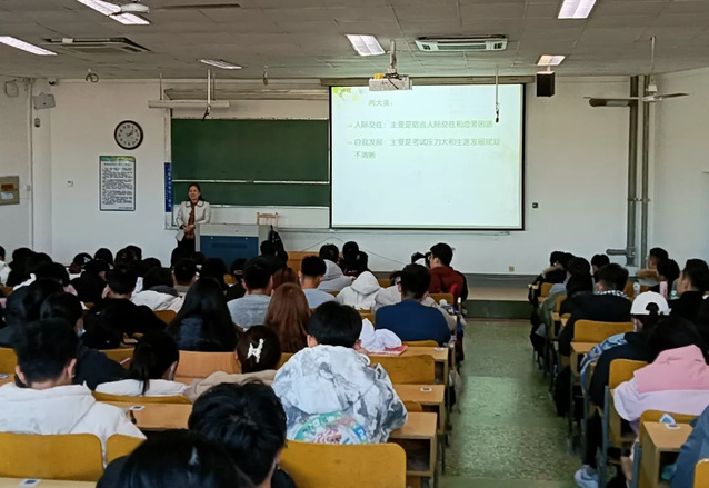 培训围绕自我发展和人际交往两个重点展开,王素霞老师从如何应对压力、如何找到努力方向、关于交往理性认识三个方面为同学们进行讲解。她表示,无论是人际交往还是自我发展,落脚点始终是自己,即员工自我是决定自身发展的主体。紧接着,王素霞为同学们阐述压力的作用,让同学们明白压力的两面性,与此同时,她给同学们提供了面对压力时的应对策略,让同学们遇到压力时有法可寻、有计可依。此外,王素霞老师从舍友关系和恋爱关系、舍友关系和恋爱关系中常出现的问题、如何处好关系、如何做到智慧表达、为什么要谈恋爱、如何应对失恋六个方面对关于交往的理性认识进行阐述。最后,王素霞老师从自身经历谈起,为同学们点明如何处理好人际交往关系。她告诉在座同学们只有降低期待,才会发现生活中更多的快乐;占据主动,不受制于人,才能做回自己;享受快乐,才能保持反思;学会站在他人的角度思考,才能划清底线;清楚自身的底线,尊重他人的底线,最终形成良性互动。