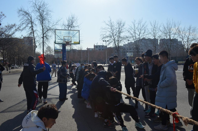 活动开始后,由各班进行选拔赛,比赛采取三局两胜制,各对战班级调整姿势,班内同学相互鼓励,确定口号。随着口哨声的响起,各班在班长的引导下共同发力,高声呐喊鼓舞斗志,选拔赛在一片片喝彩声中结束。