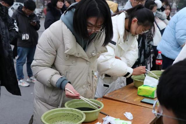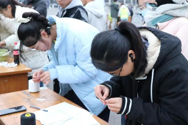 此次校园吉尼斯共25个运动项目,其中包括放飞梦想、墨中夹弹珠、疯狂颠足球、足球九宫格、三分投篮等16个单人项目以及长腿连线、十人九足、不倒森林等9个多人项目。同学们踊跃参与,现场氛围热烈且具有趣味性。“墨中夹弹珠”比赛中同学们屏气凝神,以触觉代替视觉,用筷子在墨水中飞快寻找弹珠;在“穿针引线”项目中,同学们细心认真,将线头穿过针眼,感受老一辈人的风采;长腿连线项目中,同学们尽力舒展,争取创造新的记录。在“滚雪球”团队比赛中同学们口号响亮、齐心协力、奋力奔跑。