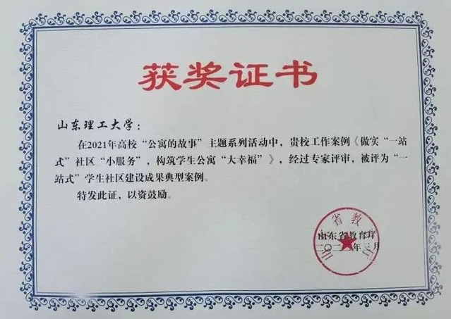 近日,山东省教育厅公布 2021 年高校“公寓的故事”主题系列活动评选结果,我院以员工公寓党团服务中心为例推报的“做实‘一站式社区’‘小服务’,构筑员工公寓‘大幸福’”案例代表公司参评,获评“一站式”员工社区建设成果典型案例。