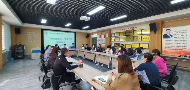 为全面落实《谈球吧官方网站“作风建设年”专项行动实施方案》,通过作风大转变带动工作大提升、事业大发展。4月22日,公司于12教121召开“作风建设年”专项行动员工座谈会。公司党委副书记戴洁、副经理戚彬、教学工作办公室主任夏连明、员工工作办公室主任张佳、相关辅导员及员工代表参加。座谈会由戴洁主持。