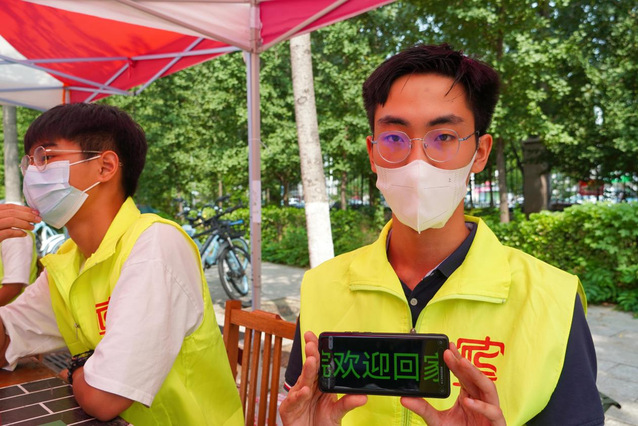 返校现场,秩序井然。返校员工佩戴口罩,有序进校,志愿者严格按照返校流程为返校员工消毒测温、核验健康码、行程卡、48小时核酸检测报告以及返校二维码等,办理返校手续。一句“同学你好,欢迎回家”是对返校员工最大的心理关怀。