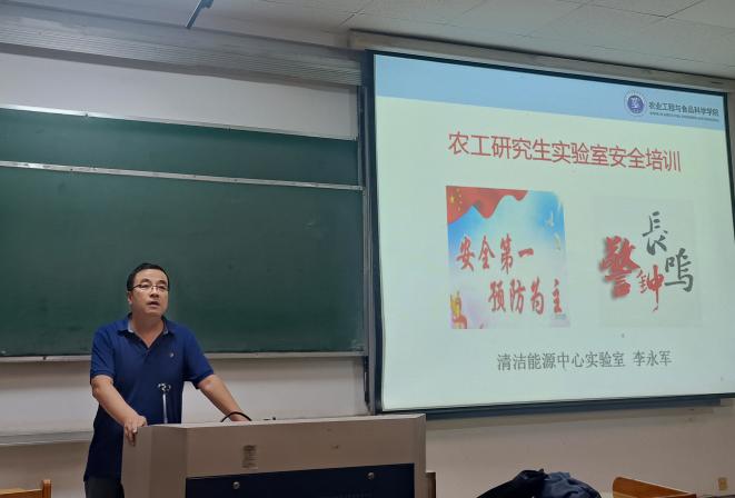 李永军老师结合多年实验室安全管理经验,以真实案例讲述了实验室安全注意事项,重点介绍了实验室危化品、气瓶、特种设备等的使用及管理以及实验室生物安全、消防安全、灭火器使用及逃生演练等,再次强化了全体研究生的安全意识。